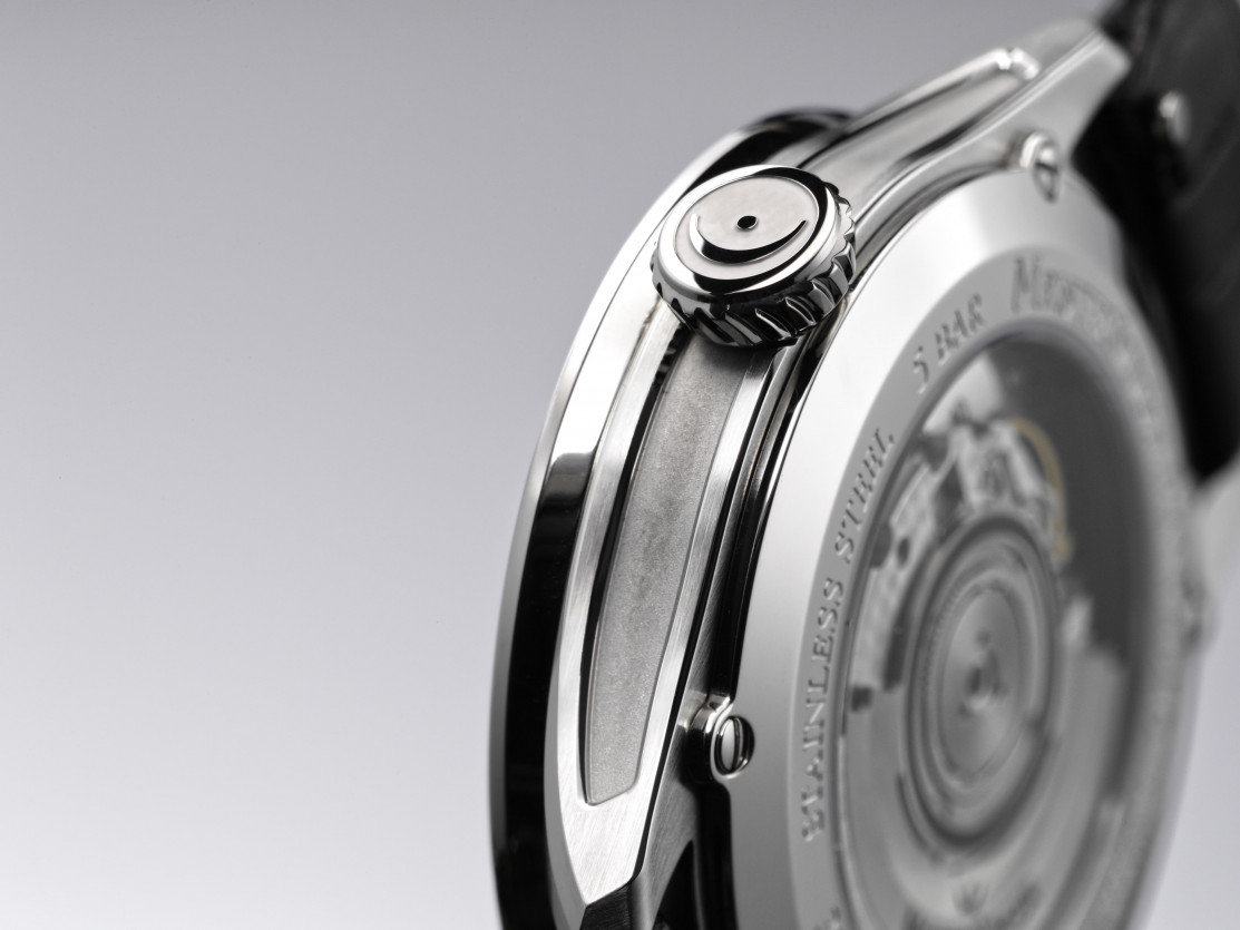 Vahetult numbri 6 kohal pöörleb väike ketas kord sekundis, nn “sun wheel”. See on diskreetne viis kinnitada, et kell töötab, kuigi see ei mõõda sekundeid klassikalisel viisil. Korpuse läbimõõt on 40,5 mm ja paksus umbes 11,25–12,3 mm, veekindlus 5 baari (50 m). Eespool on AR-kattega safiirklaas, taga klaasist kaas (näha on pärlviimistlusega moodulit ja antratsiitset rootorit kolme fermataga). Krooni keermega, viimistlused on segatud: harjatud, poleeritud, liivapritsitud.